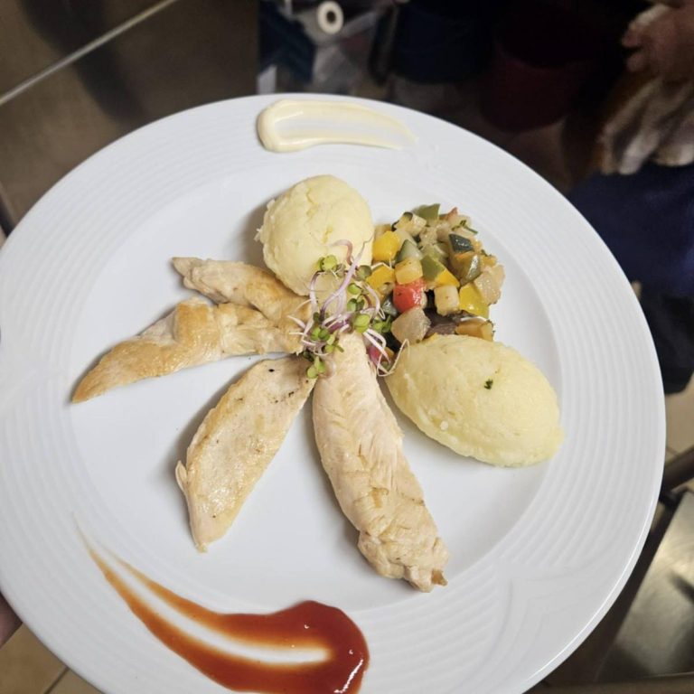 Plateaux de charcuterie (rosette, jambon serrano, andouille de Vire) Rosbeef ou Rôti de porc Salade de pomme de terre saumon fumée, groseille sauce Sirop d’érable Salade d’haricots vert Animation chaude avec plancha : Fraîcheur de crevette, bohémienne de légumes jeunes pousses Ou Magret de canard, mousseline de patate douce
