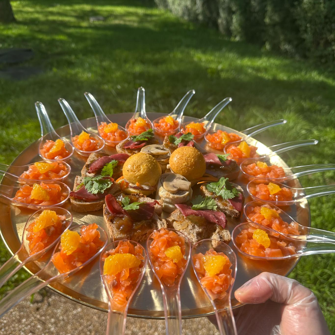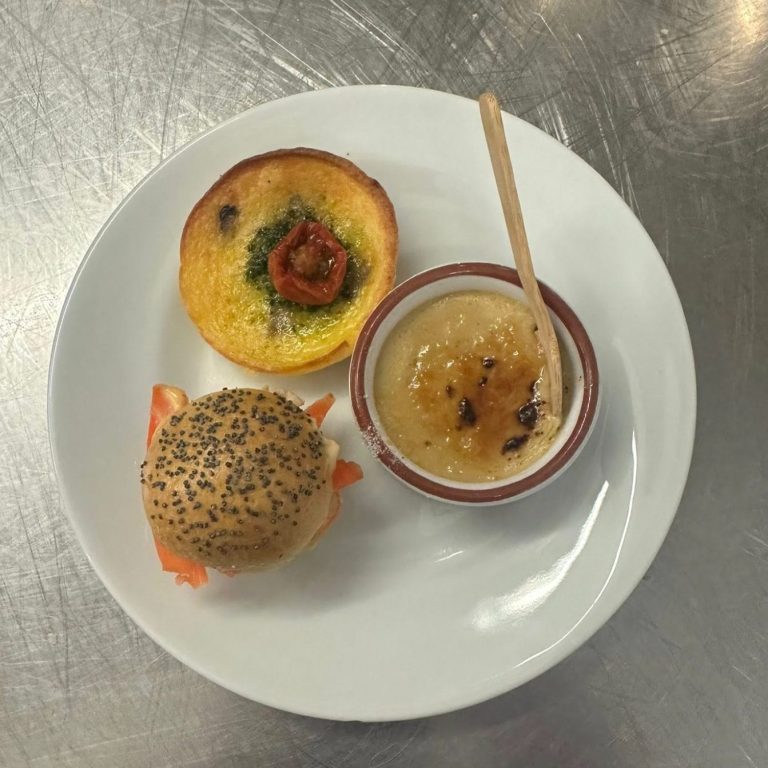 Salade de saumon fumée, pommes de terre, groseille, sauce sirop d’érable Tomate-burrata-basilic Stand poké bowl : riz vinaigré, poulet teriyaki, mais, concombre, pickles d’oignons rouges choux rouges, mangue, edam, sauce soja Plateaux de charcuterie (jambon serrano, andouille de vire, rosette) Rôti de porc Rosbeef Mayonnaise, cornichons, sauce cocktail.